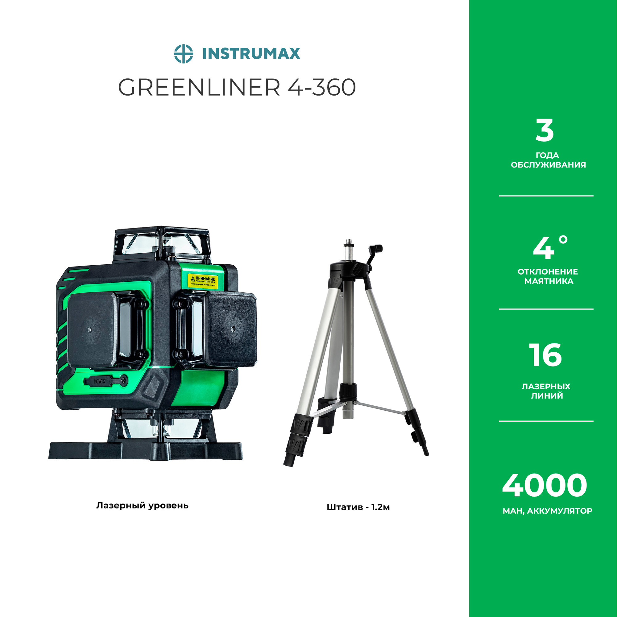 Купить Комплект Лазерный уровень INSTRUMAX GREENLINER 4-360+Штатив телескопический с резьбой 1/4 (5/8) дюйма INSTRUMAX TR-120 с доставкой по всей России.