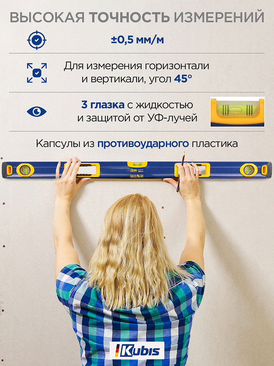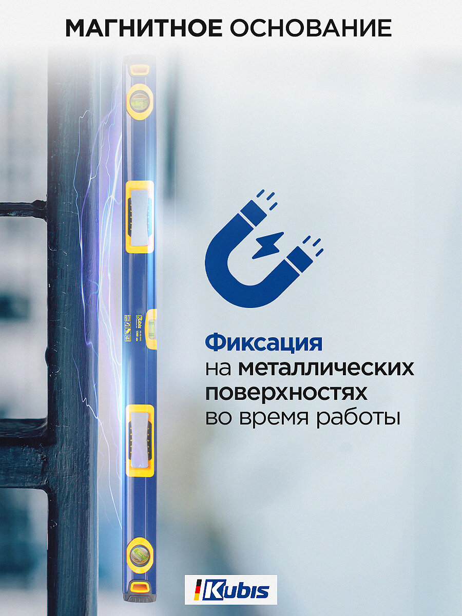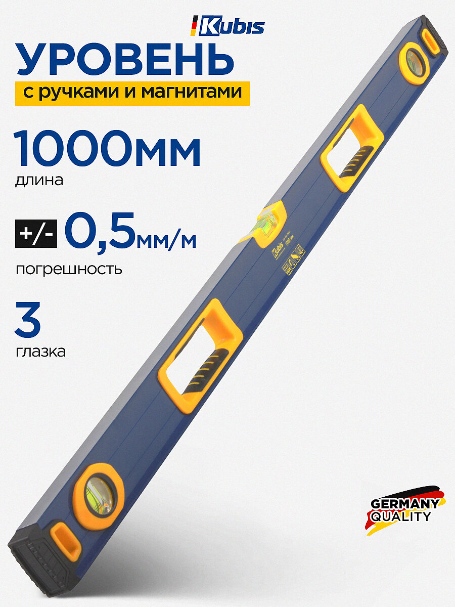Уровень магнитный строительный с ручками KUBIS 1000 мм, 3 глазка, 0,5мм/м погрешность: сравнение цен, характеристики, фото, актуальное наличие и цены.