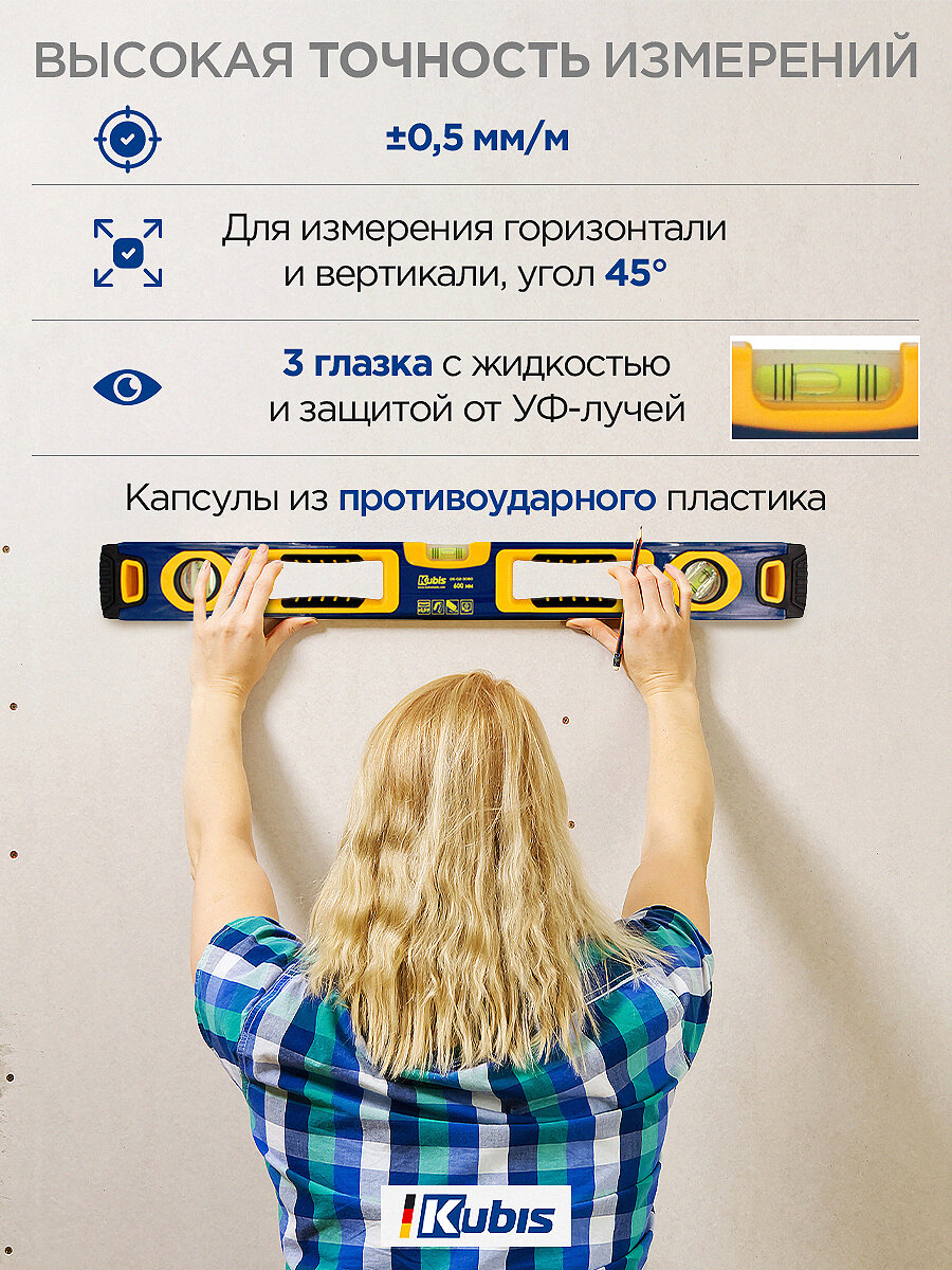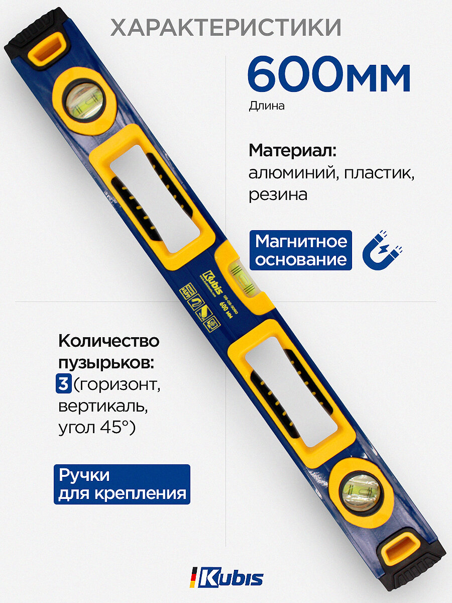 Уровень магнитный строительный с ручками KUBIS 600 мм, 3 глазка, 0,5мм/м погрешность: сравнение цен, характеристики, фото, актуальное наличие и цены.