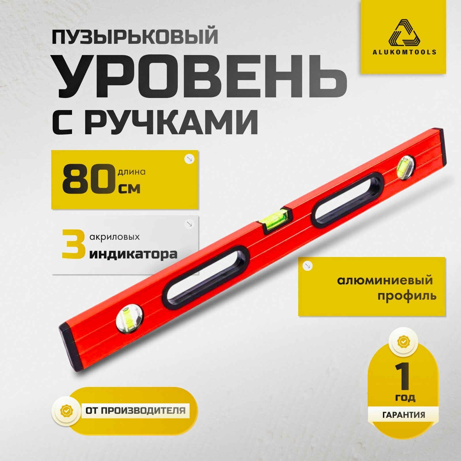 Уровень строительный окрашенный пузырьковый с ручками, 80 см, алюминиевый, ALUKOMTOOLS: сравнение цен, характеристики, фото, актуальное наличие и цены.