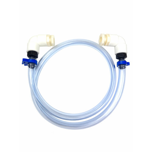 Переходники врезаются в бочку в верхней и нижней ее части. Шланг подключается вертикально с помощью фитингов.