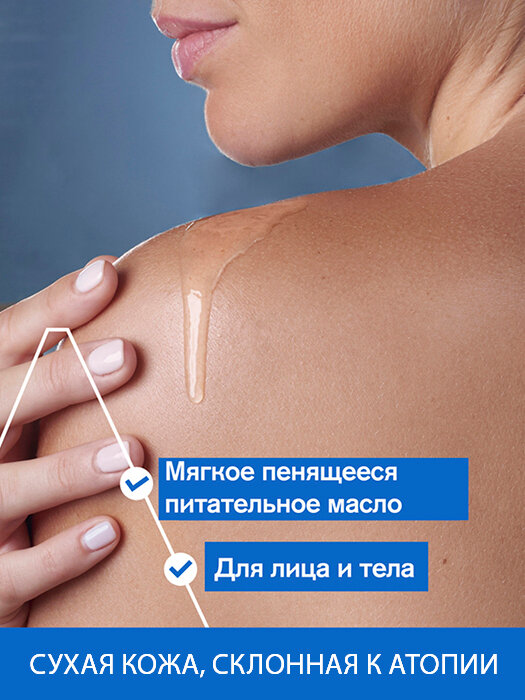Средство ежедневной гигиены для сухой, очень сухой, атопичной кожи. Мягко очищает, предупреждает нежелательные эффекты при использовании жесткой воды (принятии душа или ванной, умывания). Успокаивает зуд, уменьшает ощущение стянутости и дискомфорта. Увлажняет, восстанавливает и поддерживает защитные свойства кожи.