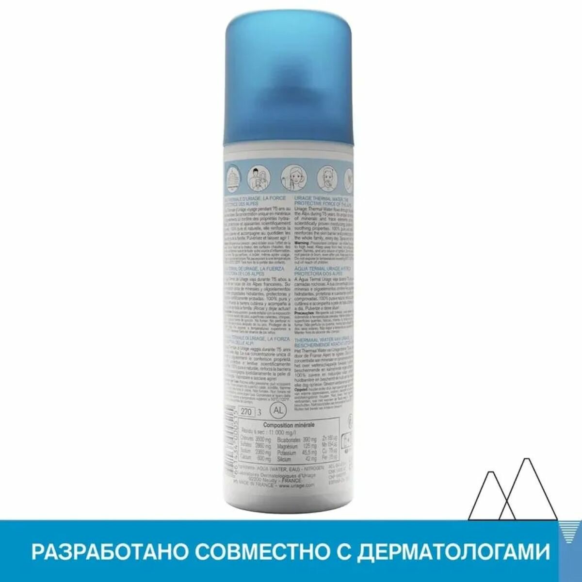 | Способ применения | Распылите воду на кожу лица и/или тела и оставьте впитываться, не подсушивайте и не промокайте. Увлажняющий эффект Термальной воды Урьяж становится значительным через 1 час и достигает максимума через 3 часа после аппликации. |