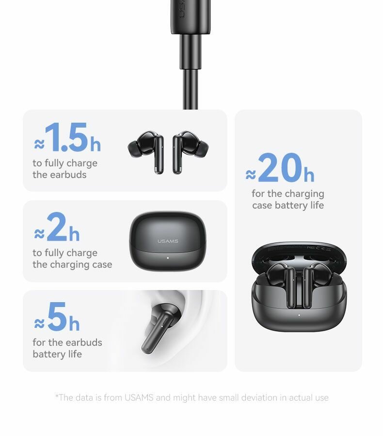 Usams беспроводные TWS наушники, Bluetooth 5.3, черные