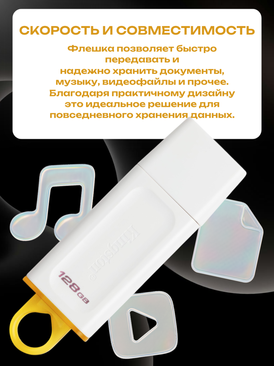 USB флешка Kingston DataTraveler Exodia: стильный и надежный помощник USB флеш-накопитель Kingston DataTraveler Exodia объемом 128 ГБ – стильный и надежный помощник для хранения и передачи данных. Благодаря интерфейсу USB 3.2 Gen 1, передача данных осуществляется быстро, что экономит ваше время и усилия при работе с большими файлами. Корпус накопителя выполнен из качественного пластика, что гарантирует его долговечность и устойчивость к повреждениям. Особенностью данной модели является наличие колпачка на разъеме, который защищает разъем от пыли и грязи, а также предотвращает случайное извлечение накопителя. Выбирая USB флеш-накопитель Kingston DataTraveler Exodia, вы получаете стильный, надежный и функциональный аксессуар, который станет незаменимым помощником в работе и повседневной жизни.