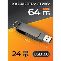USB флешка, USB flash-накопитель, Флешка Stone, 64 ГБ, темно-серая, USB 3.0, арт. F44: сравнение цен, характеристики, фото, актуальное наличие и цены.