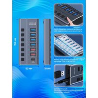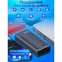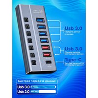 Разветвитель usb (usb hub 3.0) имеет 6 разъемов usb и 1 разъем Type-C. USB порты имеют высокую скорость передачи данных 5 Гбит/с, что является его отличительной особенностью! Это удобно, если у вас ограниченное количество разъемов, позволяет подключать несколько устройств к одному usb порту компьютера пк или ноутбука. Хаб юсб имеет выключатели для каждого порта, что позволяет вам управлять подключенными устройствами и отключать их по вашему усмотрению и защищает прибор от перегрева.