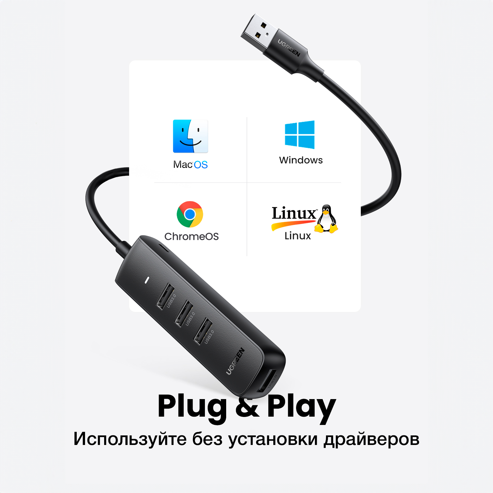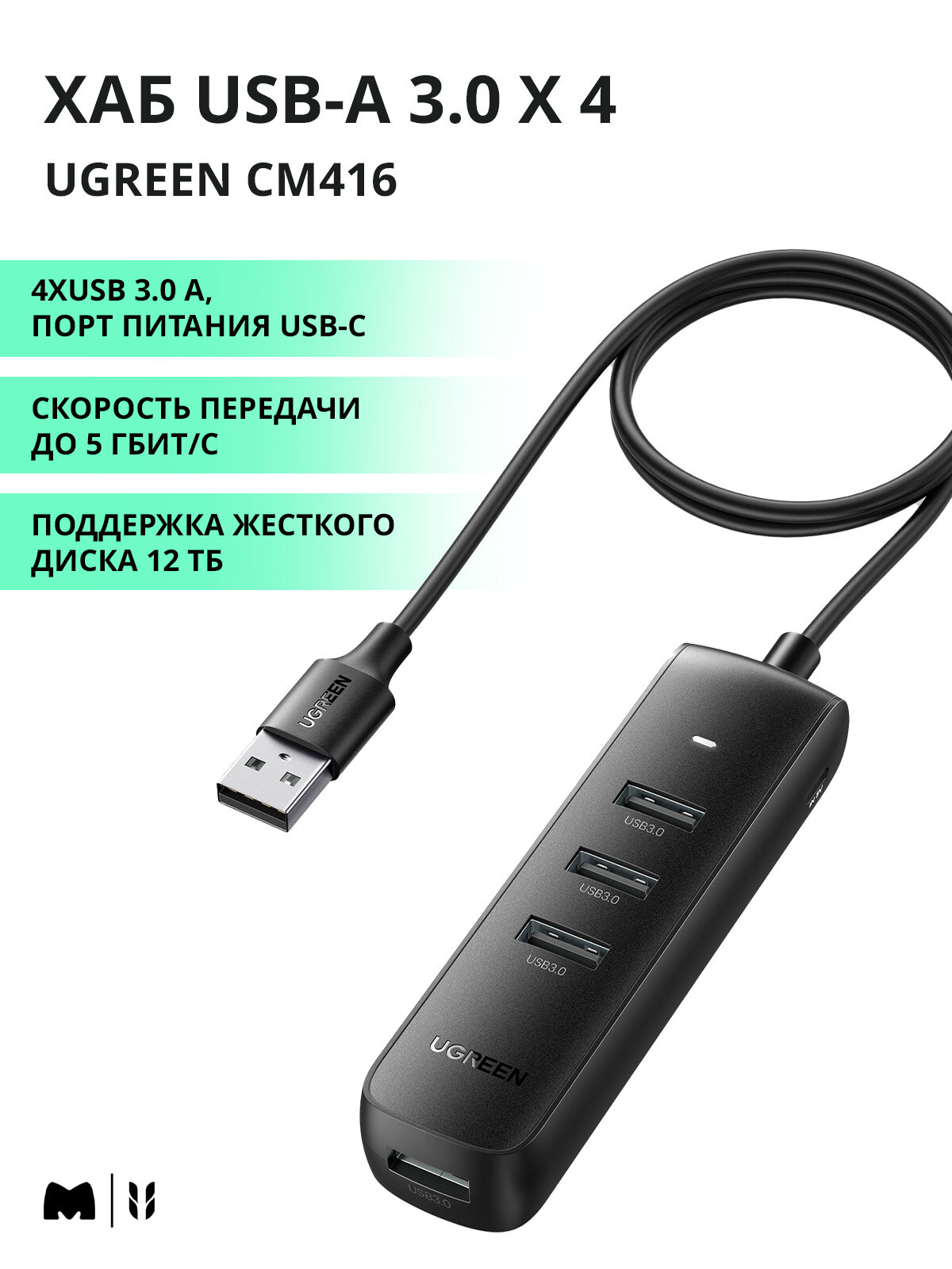Купить USB-Хаб Ugreen CM416 USB-A 3.0 x 4, провод 1 м, цвет черный (80657) с доставкой по всей России. USB-Хаб Ugreen CM416 USB-A 3.0 x 4, провод 1 м, цвет черный (80657): сравнение цен, характеристики, фото, актуальное наличие и цены.