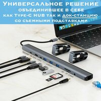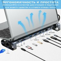Купить USB HUB 3.0 док-станция для ноутбука 10in1 / Type-C HDMI HUB для MacBook / USB Разветвитель с HDMI 4K 30 Гц, RJ-45 100 Мбит/С, USB 3.0×3, PowerDelivery 100W с доставкой по всей России.