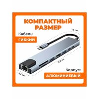 Купить USB концентратор на 8 портов, хаб переходник для HDMI, Type-C, USB, SD, micro SD, Ethernet RJ45 к компьютеру и ноутбуку с доставкой по всей России.