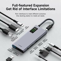 Встроенный ЖК-дисплей позволяет легко отслеживать состояние подключения и работу оборудования, что является важным преимуществом для тех, кто активно использует множество периферийных устройств. Вы можете подключить клавиатуру, мышь, флеш-накопители и другие аксессуары без проблем, сохраняя порядок на столе.