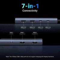 Конвертер UGREEN CM498 - это уникальное решение для тех, кто хочет подключить несколько устройств к одному источнику питания. Этот концентратор позволяет вам использовать один USB-C порт для подключения двух USB-A 3.2 портов, двух HDMI портов и одного PD порта. Это значит, что вы можете подключить свой ноутбук, планшет, игровую консоль и даже внешний жесткий диск к одному источнику питания!