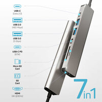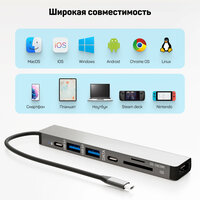 Купить Type-C хаб с OTG, HDMI 4К, USB 2, USB 3, Type-C, SD, MicroSD, концентратор с питанием 100W, универсальный разветвитель с доставкой по всей России.