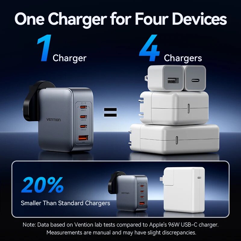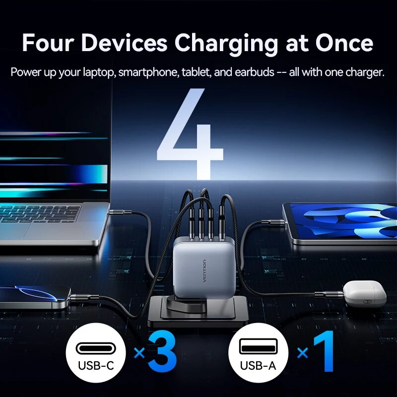 Купить USB-зарядное устройство Vention 100 Вт GaN Charge для iPhone 16 15 14 PD Быстрая зарядка для iPad Xiaomi Samsung USB Type C Зарядное устройство для мобильного телефона, Gray US 100W Cable с доставкой по всей России.