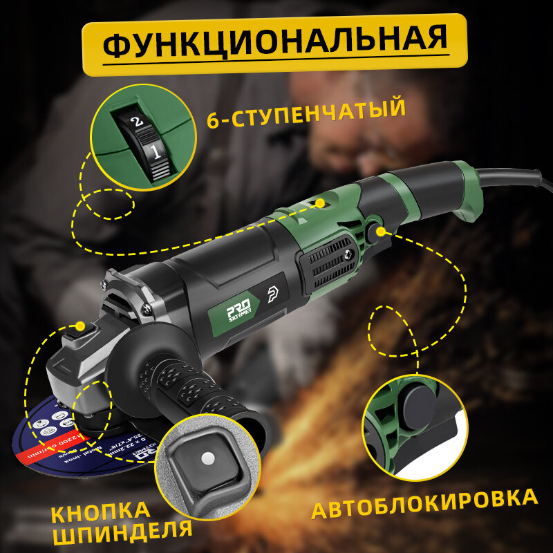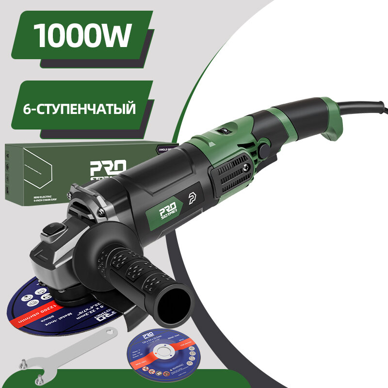 Купить УШМ PROSTORMER,1000 Вт, диск 125 мм, Регулировка оборотов в 6 ступеней,PSBG003A с доставкой по всей России.