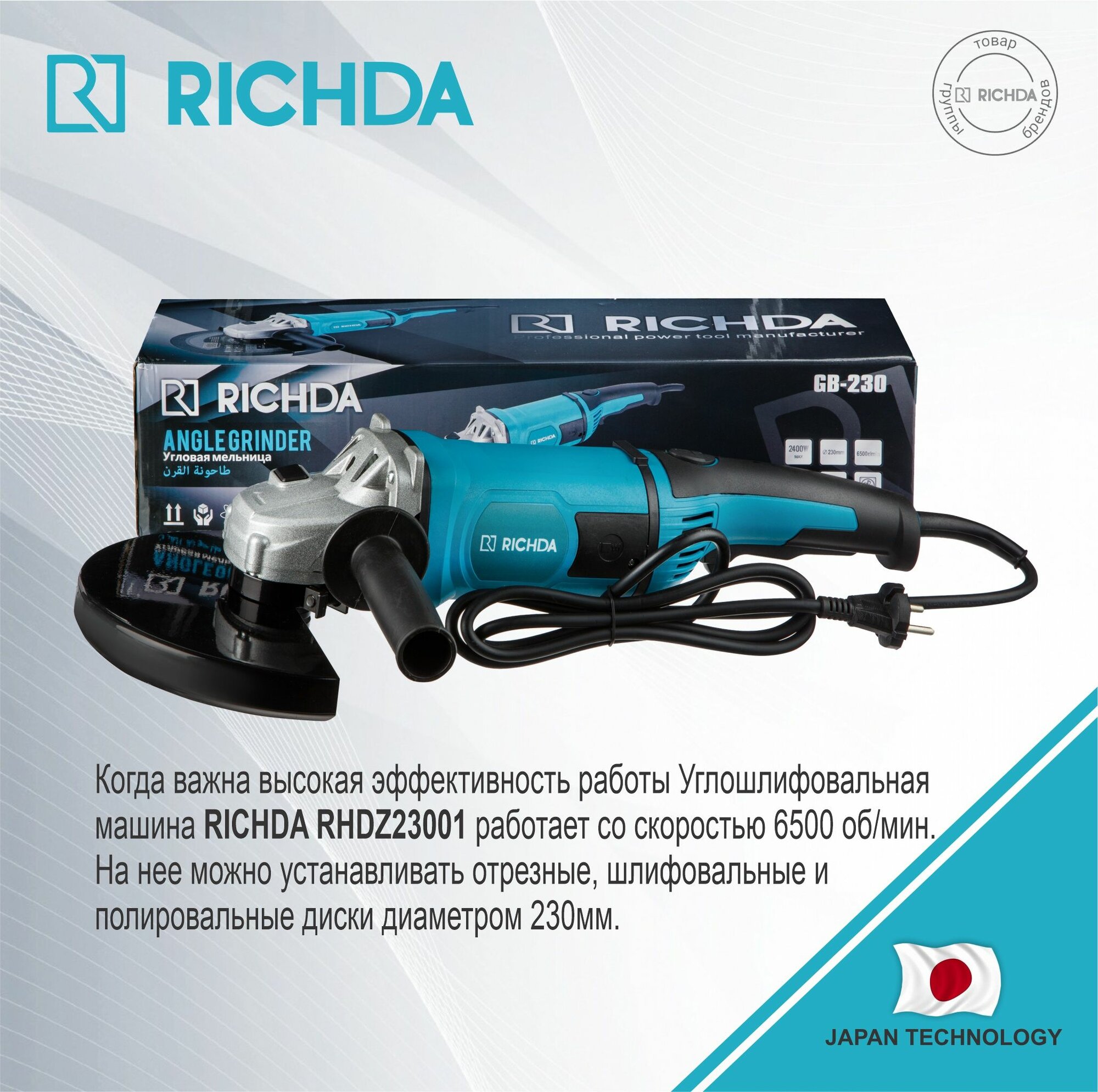 УШМ RICHDA RHDZ23001, болгарка 2400Вт, диск 230мм, 6500об/мин, защитный кожух: сравнение цен, характеристики, фото, актуальное наличие и цены.