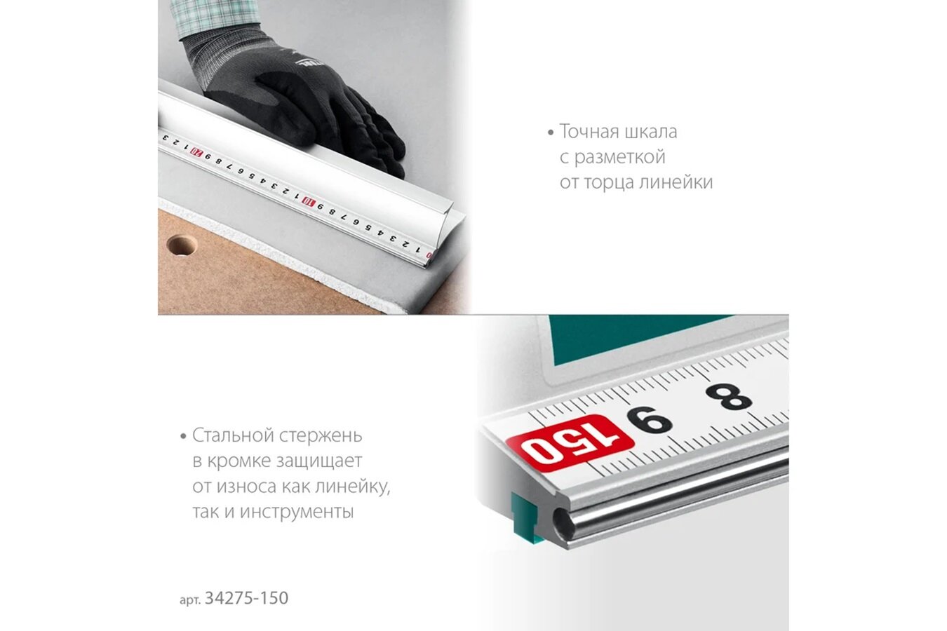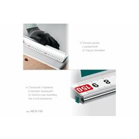 Усиленная алюминиевая линейка 1.5 м со стальной направляющей KRAFTOOL Kraft-line 34275-150 обеспечивает точные ровные линии при резке и разметке. Незаменима при выполнении чертежей, резке изделий, нанесения штриховки, разметки. Точный и универсальный инструмент для любого производства. Применяется для резки и раскроя листовых и рулонных материалов на любом крупном и малом производстве: в столярном и швейном цехе, для резки напольных покрытий, любых декоративных панелей, тканей, самоклеящейся плёнки, авто винила, фотобумаги, баннерного полотна, пластика ПВХ, пенокартона. Характеристики: Тип: линейка измерительная Тип нанесения разметки: краска Поверка: нет Длина: 1500 мм Длина разметки: 1500 мм Ширина: 65 мм Толщина: 8 мм Цена деления: 1 мм Материал: анодированный алюминий, сталь Двусторонняя шкала: нет Диапазон измерений: 1-1500 мм Телескопическая: нет Габариты без упаковки: 1500х65х37 мм Вес нетто: 1.84 кг Преимущества: Мощная линейка для резки из анодированного алюминия со стальной направляющей Жёсткое профилированное полотно из анодированного алюминия Стальной стержень в кромке, защищает от износа, как линейку, так и инструменты Удобная ручка-держатель надёжно защищает руки от мелких травм и порезов Противоскользящее основание со специальными стопорными силиконовыми накладками Точная шкала с разметкой от торца линейки Специальная форма профиля для точного и плотного прилегания к поверхности любого материала