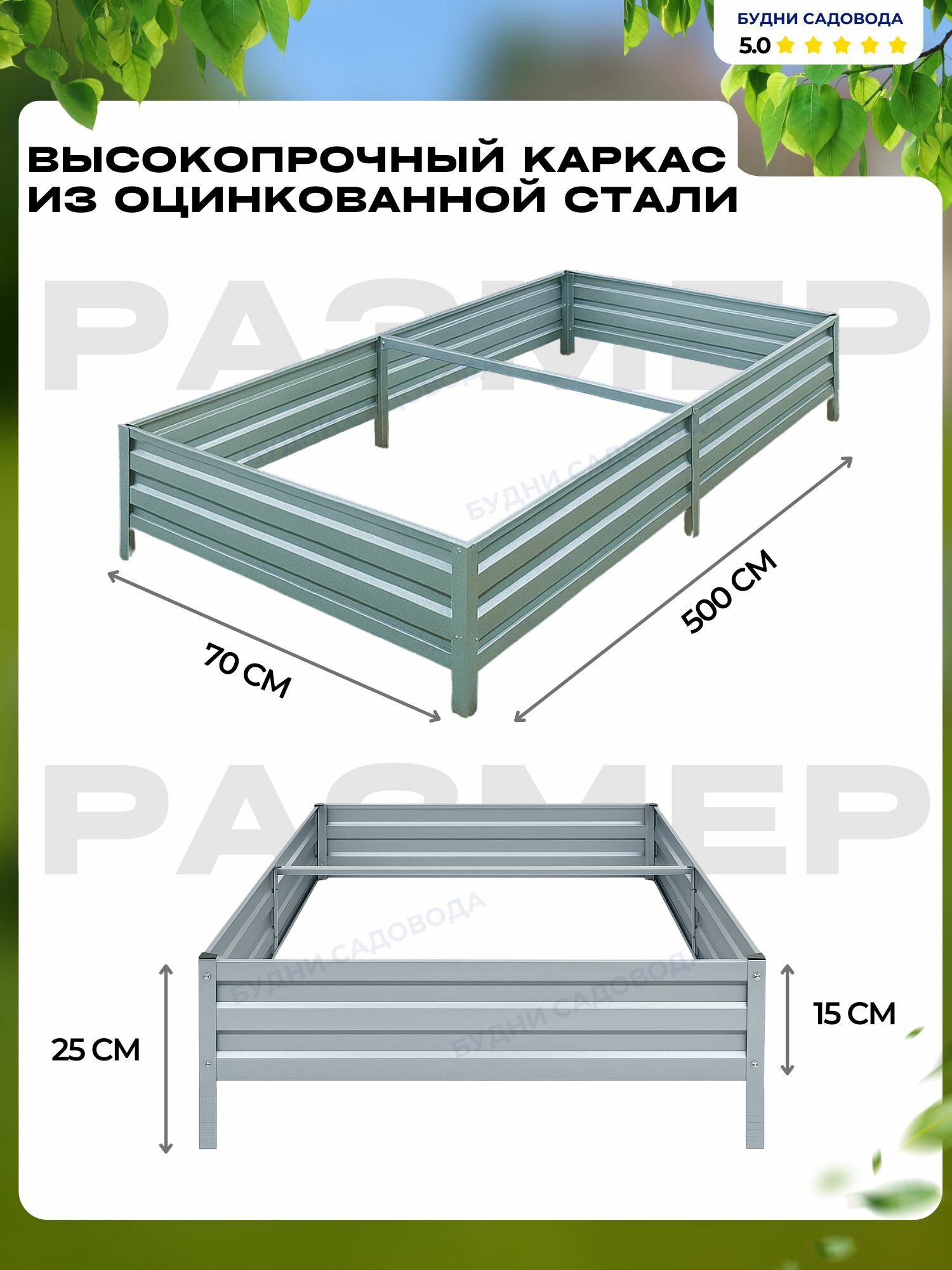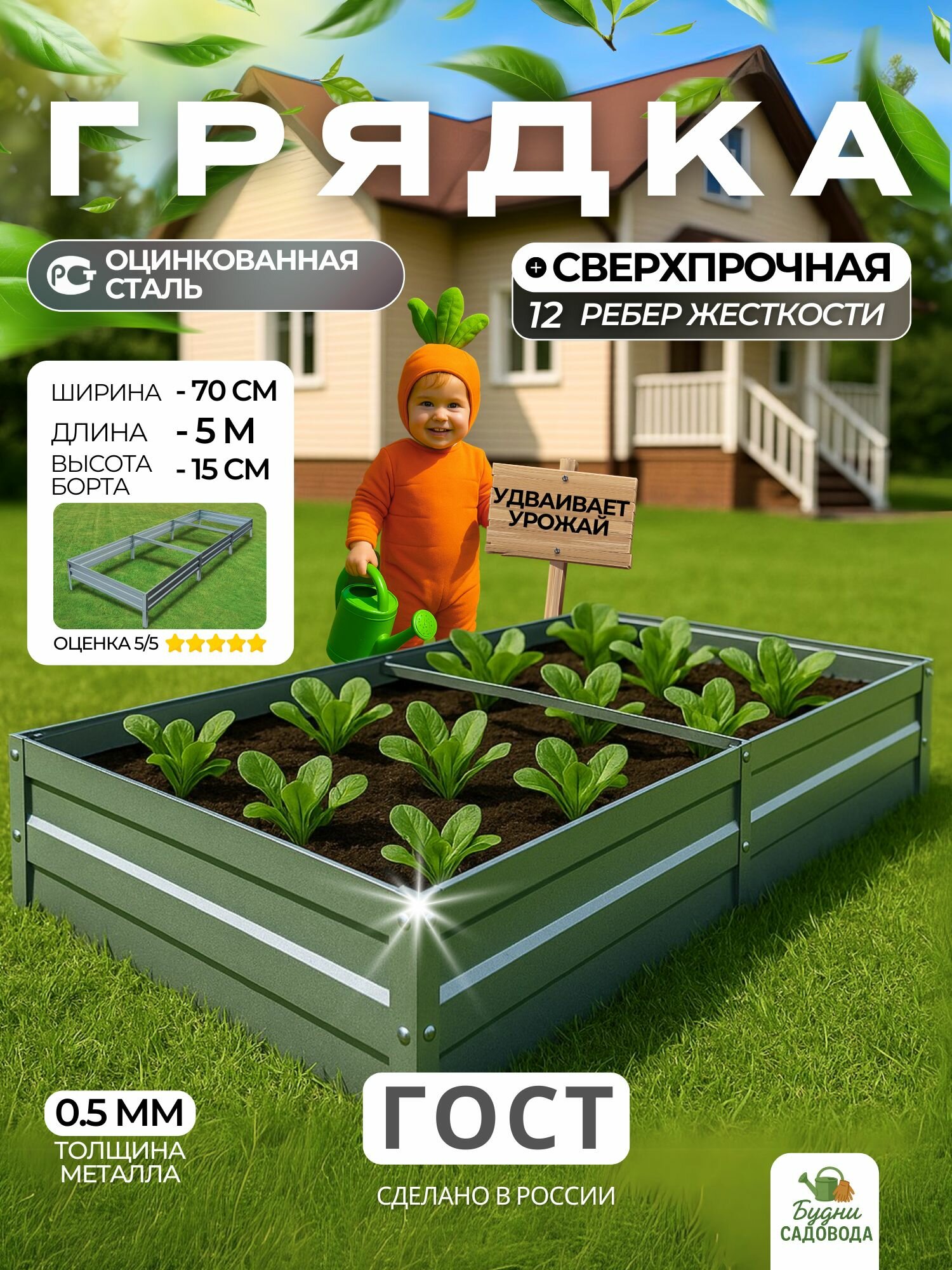 Оцинкованная усиленная грядка 5 м × 0.7 м × 15 см — идеальное решение для огорода.