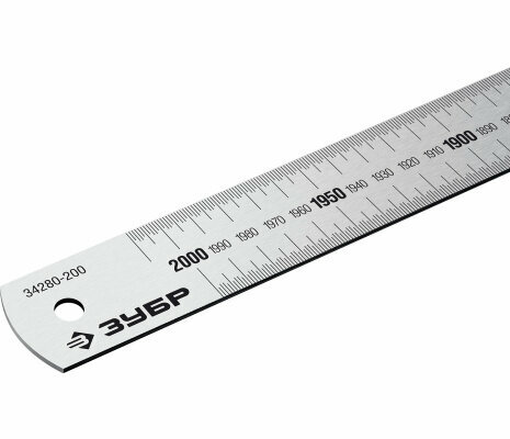 Усиленная нержавеющая линейка ЗУБР Про-200, 2,0 м (34280-200)