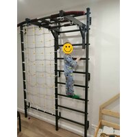 В комплект входит: -Шведская стенка -Турник-рукоход, съемный, -Гимнастические кольца, -Канат, -Веревочная лестница, -Сетка-лаз NEW, -Комплект крепления к стене.