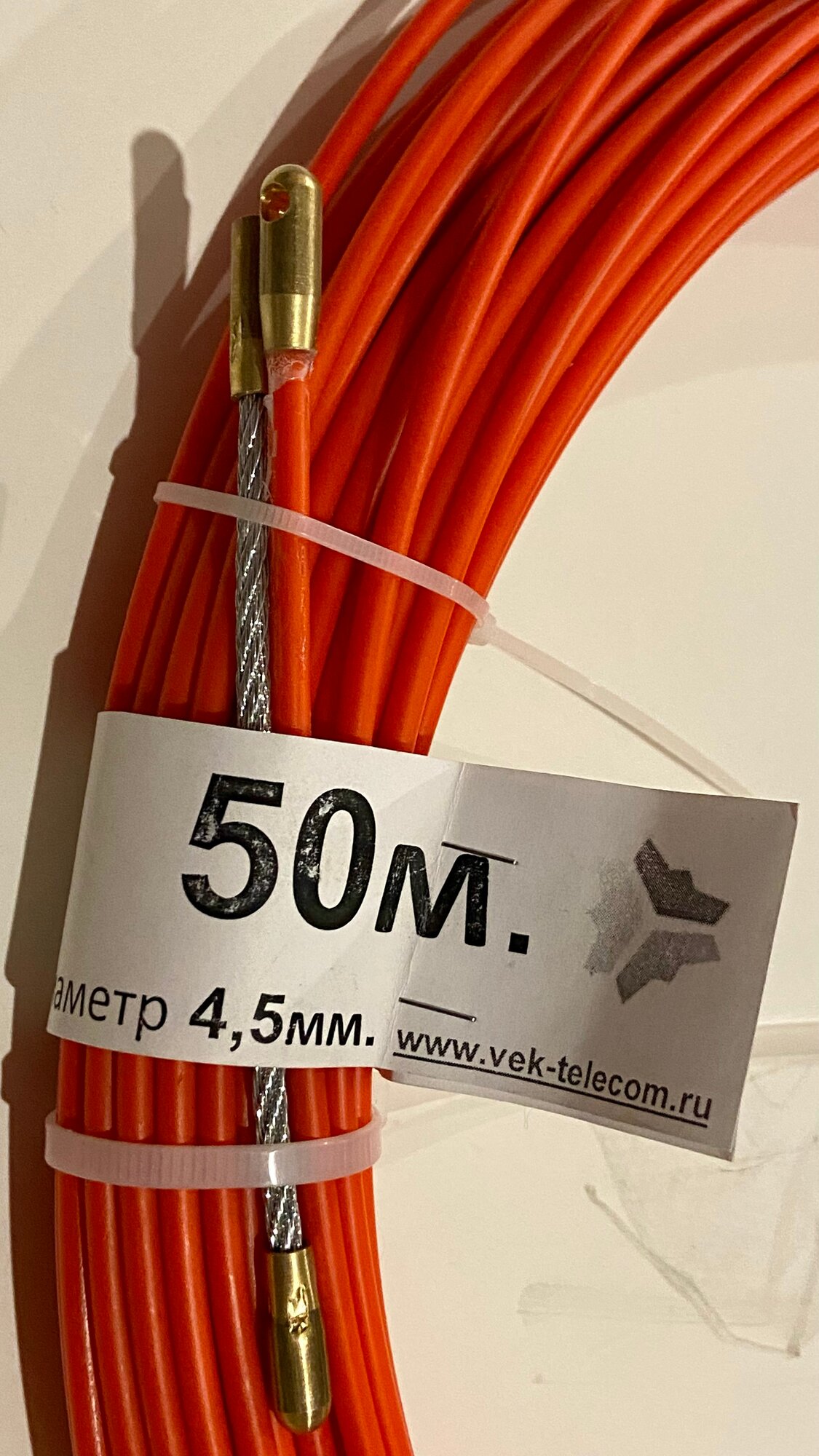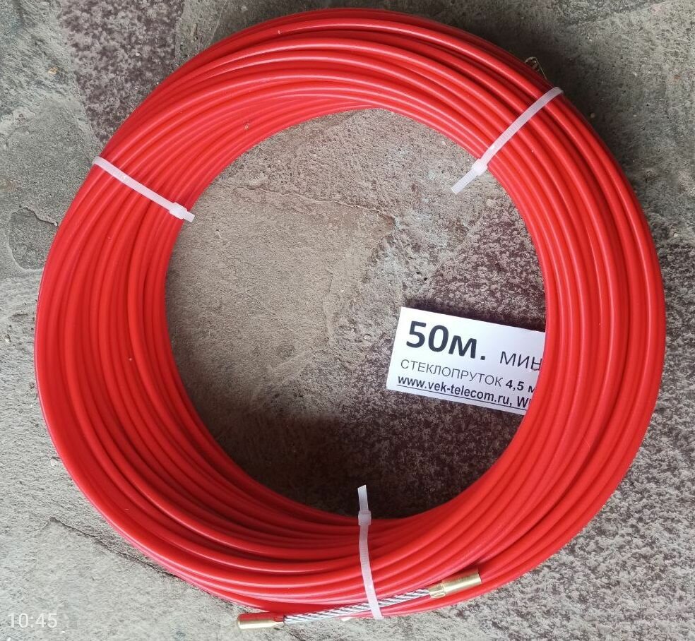Усиленное УЗК протяжка для кабеля на жёстком стеклопластиковом прутке 4,5мм, в бухте, длина 50 метров.