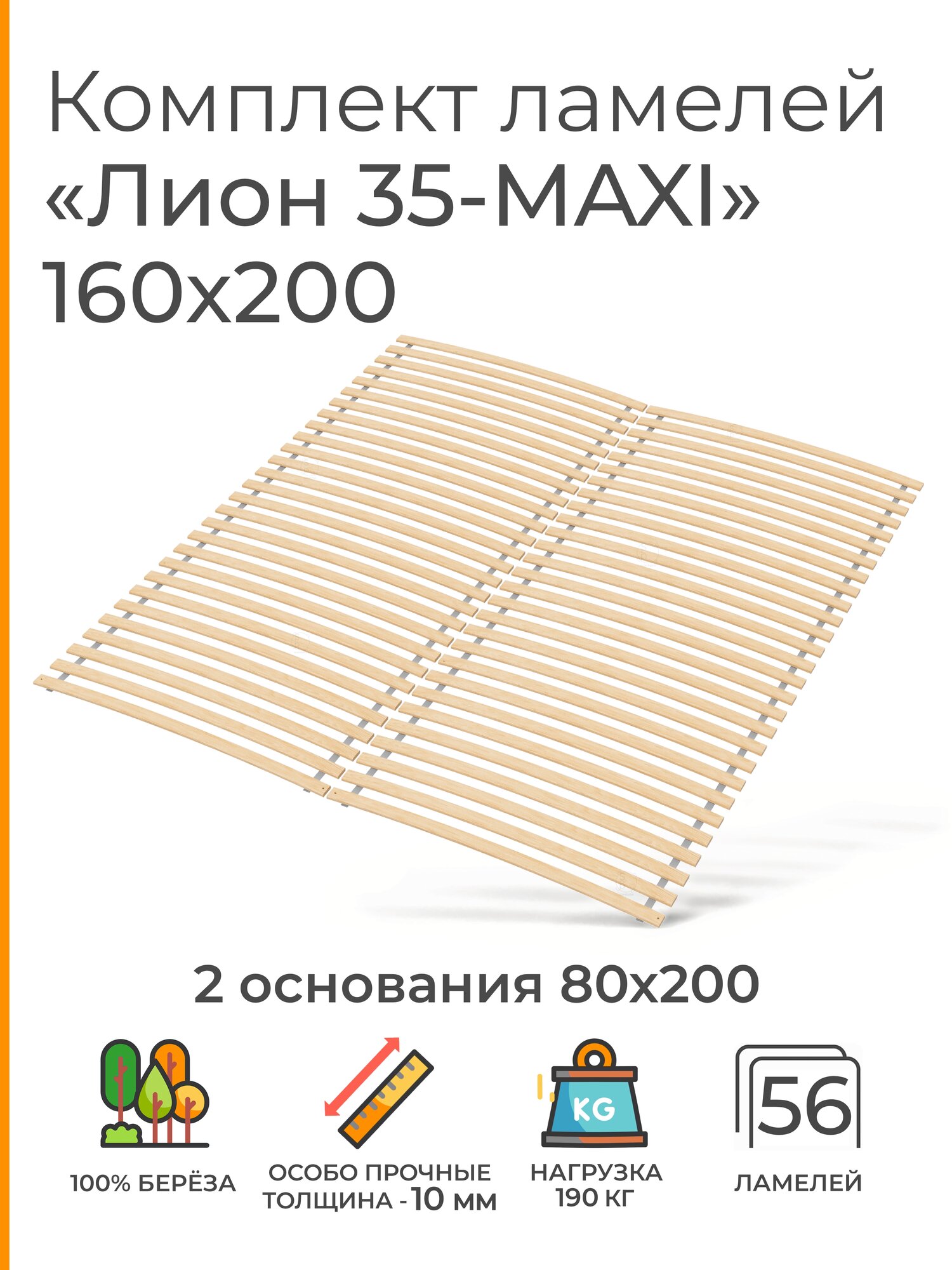 Усиленные ламели «Лион 35 — MAXI», 160х200 см. (кроватное основание 28 ламелей толщиной 10 мм, узкие ламели на ленте, ортопедическое реечное дно кровати): сравнение цен, характеристики, фото, актуальное наличие и цены.