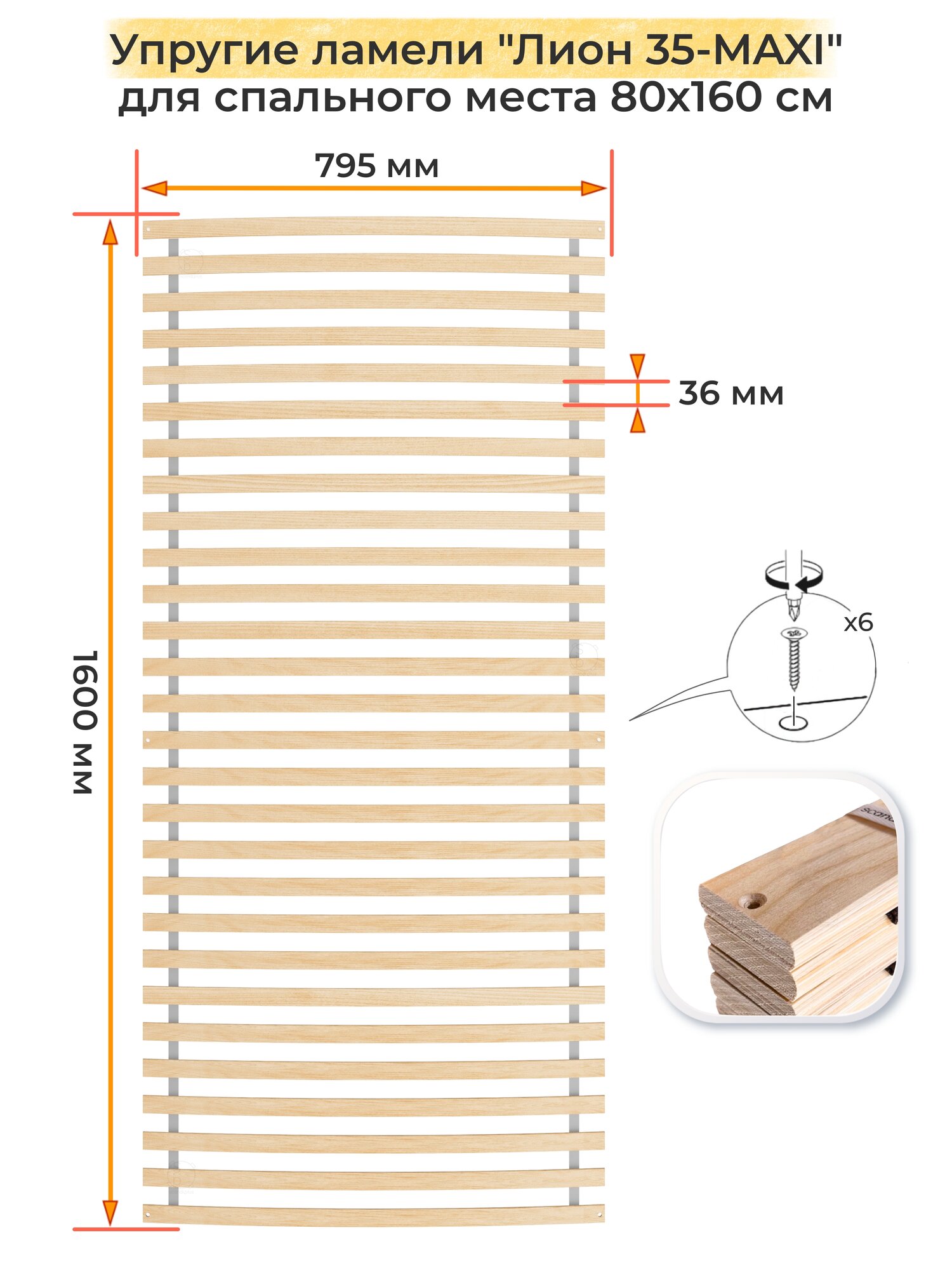 Усиленные ламели «Лион 35 — MAXI», 80х160 (ортопедическое основание для кровати, ламели 900 мм, реечное дно, основа под матрас односпальной кровати): сравнение цен, характеристики, фото, актуальное наличие и цены.