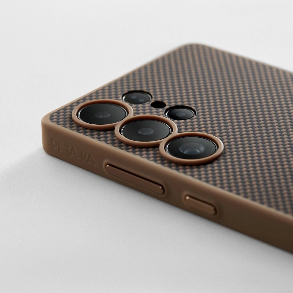 Усиленный чехол Pitaka PIN Button Military-Grade Protective Case для Samsung S25 U, черный/золотой (Black/Gold Plain): сравнение цен, характеристики, фото, актуальное наличие и цены.