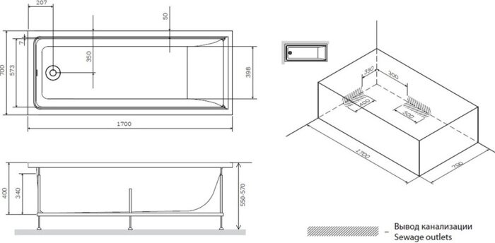 | Дополнительная информация | Ножки - да; ручки - нет; слив-перелив - нет |