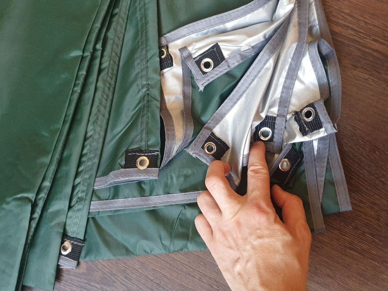 - По всему периметру вшиты 8 люверсов колец для крепления растяжек.
