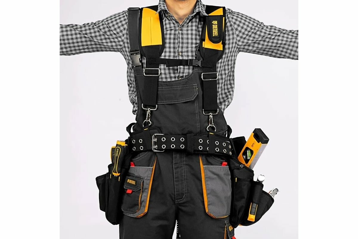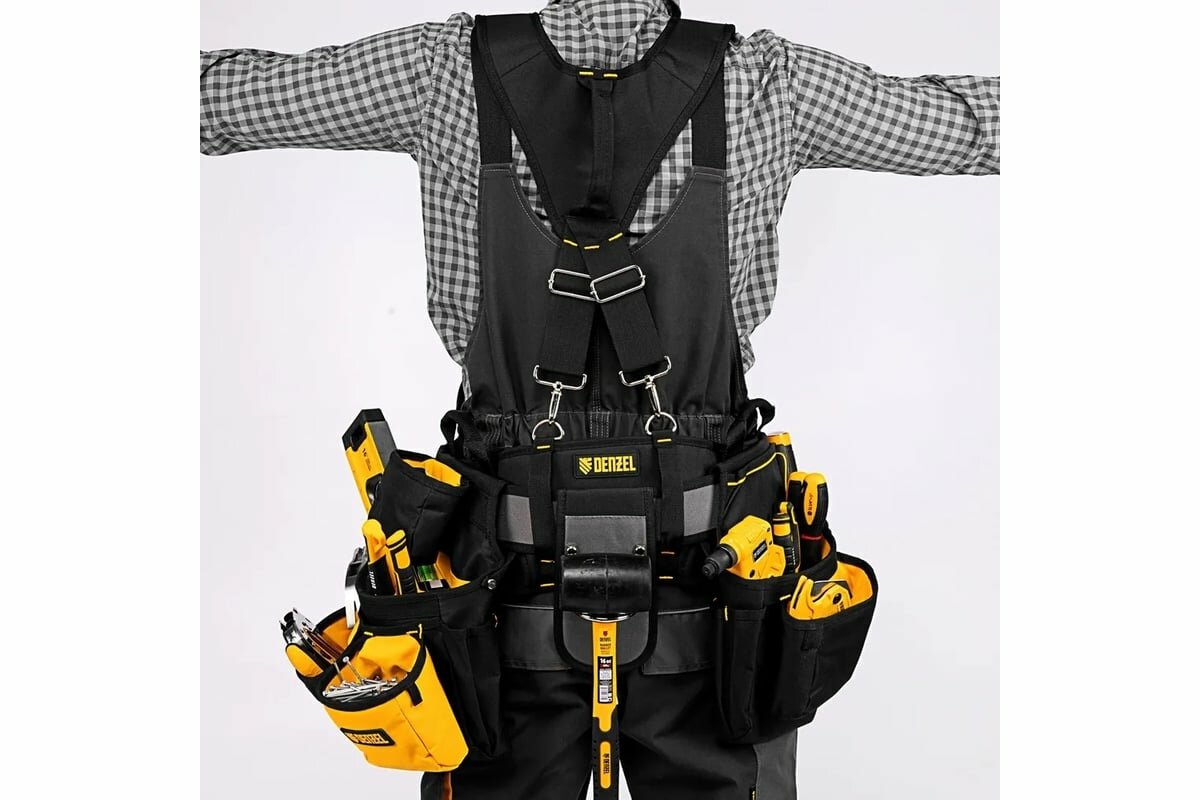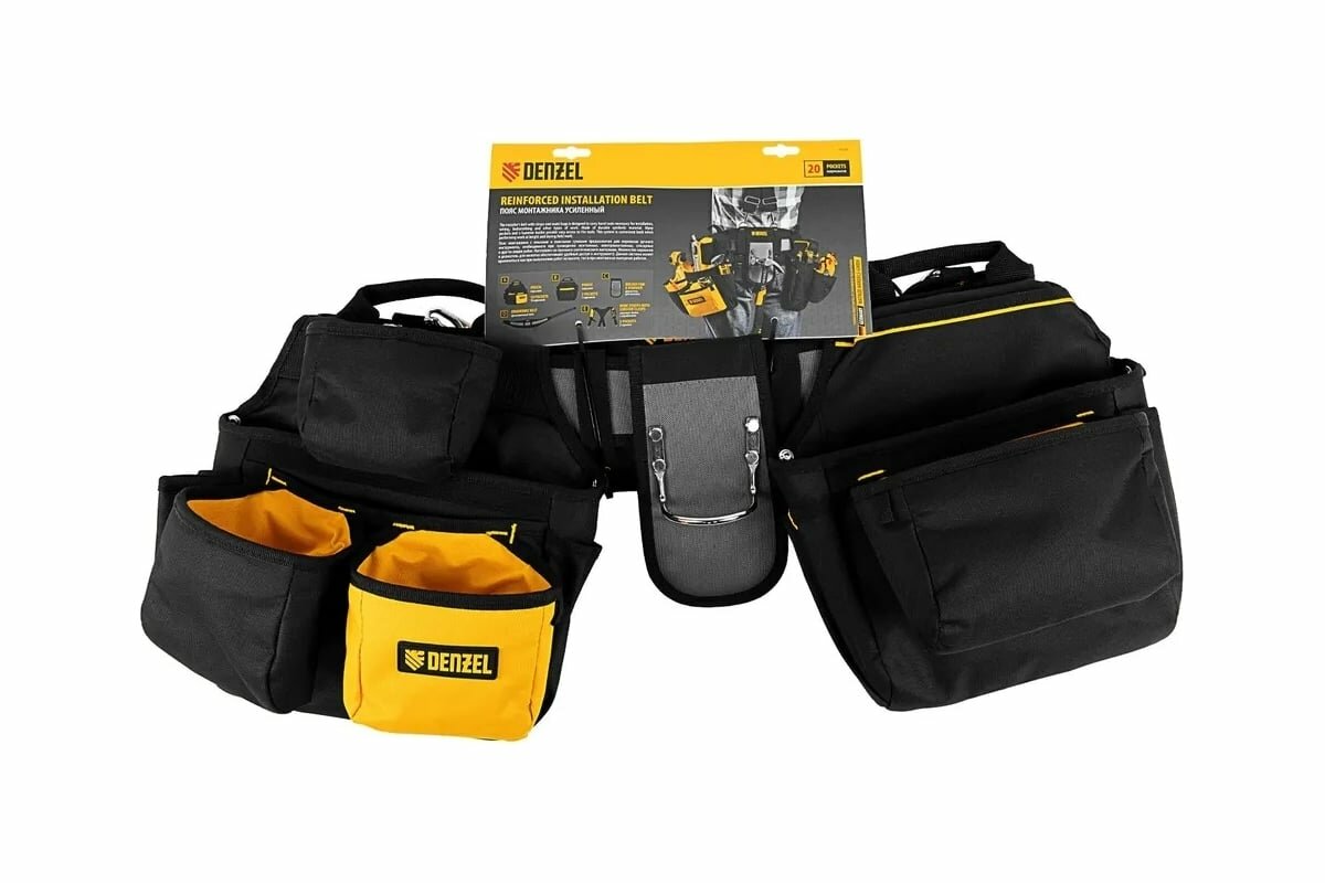 Пояс монтажный усиленный, с лямками, сумки поясные, держатель для молотка DENZEL: сравнение цен, характеристики, фото, актуальное наличие и цены.