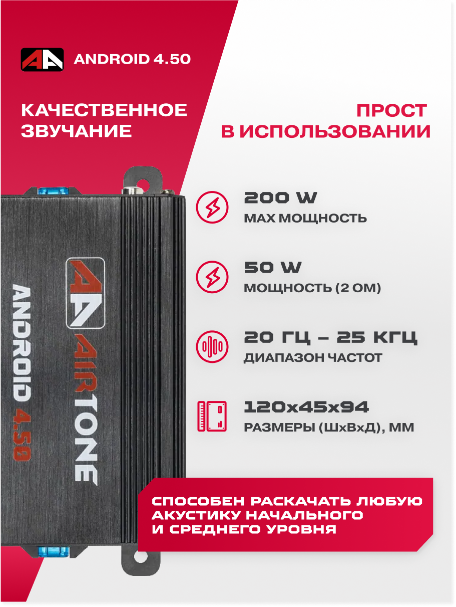 Купить Усилитель AIRTONE Android 4.50, 4-канальный, для всех авто, черный с доставкой по всей России. Усилитель AIRTONE Android 4.50, 4-канальный, для всех авто, черный: сравнение цен, характеристики, фото, актуальное наличие и цены.