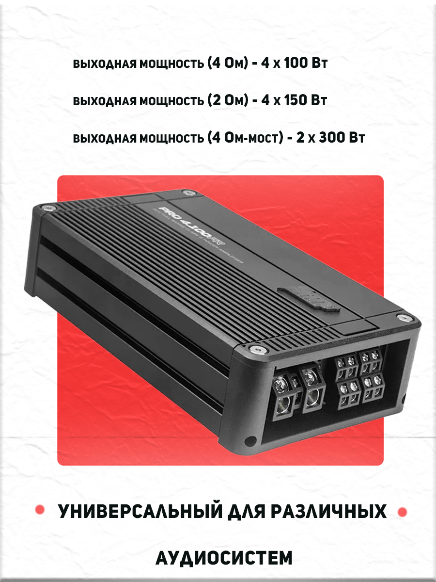 Усилитель AMP PRO 4.100FR, 4 канала, черный, 100 Вт, 2х150Вт, класс D: сравнение цен, характеристики, фото, актуальное наличие и цены.