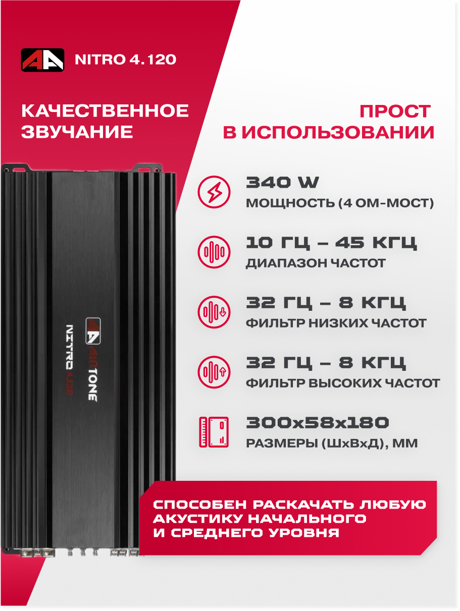 Купить Усилитель автомобильный AirTone «NITRO 4.120», 4-канальный, черный с доставкой по всей России. Усилитель автомобильный AirTone «NITRO 4.120», 4-канальный, черный: сравнение цен, характеристики, фото, актуальное наличие и цены.