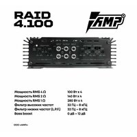Усилитель автомобильный AMP RAID 4х канальный, 100Вт, 140Вт - 2ом – надежный и долговечный выбор для тех, кто ценит качество звука и надежность работы своей автомобильной аудиосистемы.