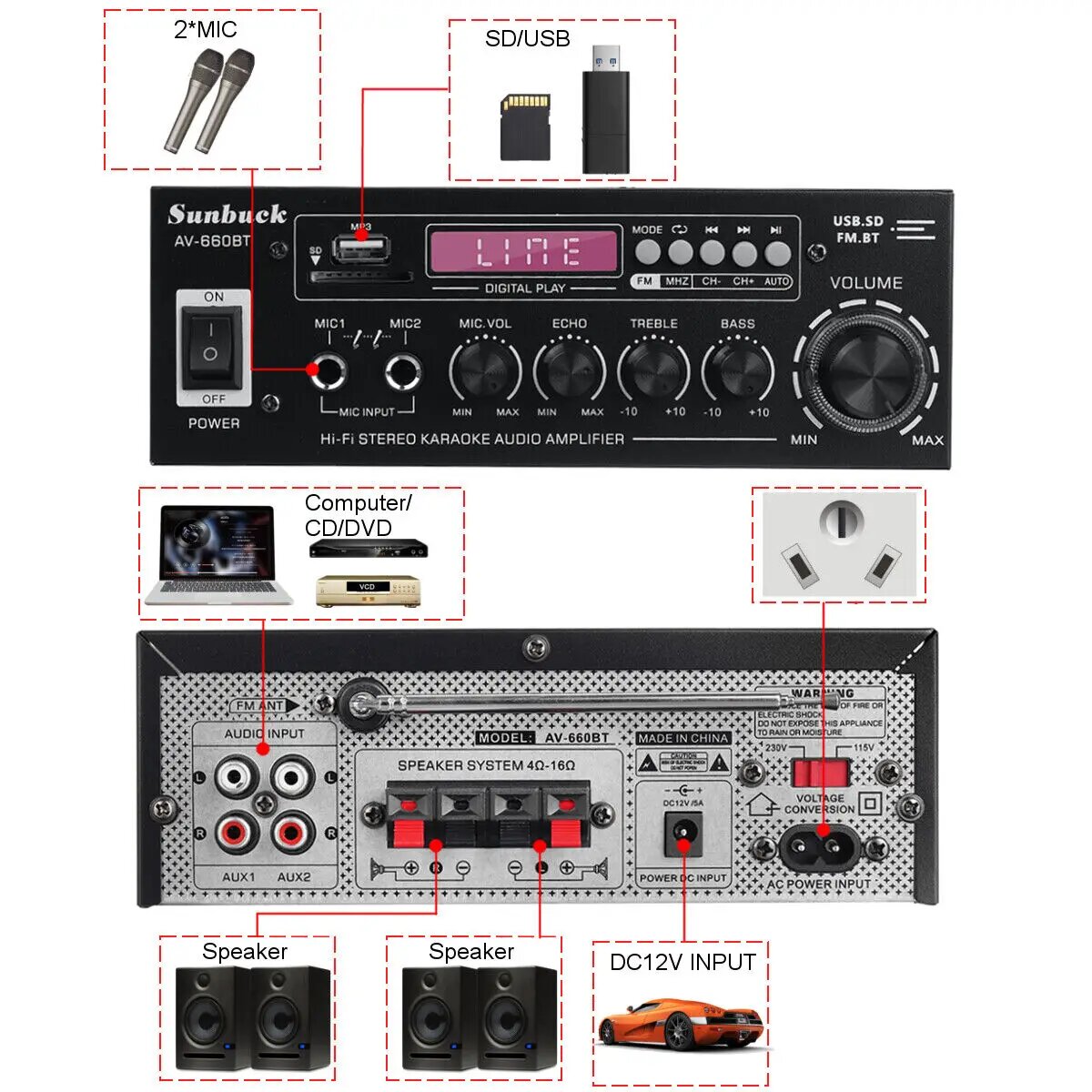 Усилитель для домашнего кинотеатра SUNBUCK AV-660BT/AK370 BT5.0, 660BT White EU Plug: сравнение цен, характеристики, фото, актуальное наличие и цены.