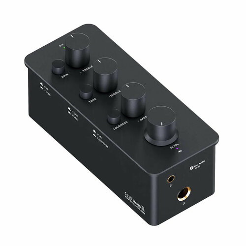 Fosi Audio SK01 — компактный предусилитель с приятным дизайном, тембр блоком и ручкой регулировки громкости от популярного производителя Hi-Fi акустики, который отлично подойдет наушников с сопротивлением от 16 до 300 Ом. Устройство включает оригинальный чип NE5532 от американской компании Texas Instruments и качественные транзисторы, которые обеспечивают высокую выходную мощность до 1300мВт при нагрузке в 32 Ом, низкий уровень гармонических искажений и хорошее отношение сигнал/шум: 110 дБ. Ответственно подобранные элементы усилителя для наушников позволяют прослушивать качественные lossless записи со всеми деталями. Для работы необходим блок питания 5-20В с USB или, выходная мощность зависит от его мощности.