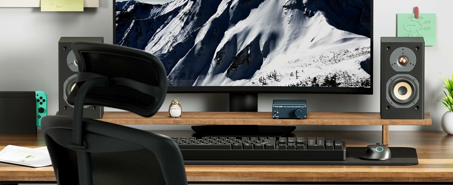 Компактный корпус размером 130 × 100 × 35 мм и весом всего 650 грамм позволяет легко разместить усилитель в любом месте, будь то полка, стол или развлекательная зона. Простота подключения — ещё одно преимущество: усилитель оснащён удобными выходами для колонок, поддерживающими различные типы соединений, включая оголённые провода и разъёмы типа «банан». Всё, что вам нужно, — это подключить ваши пассивные колонки и источник звука, чтобы насладиться высоким качеством звучания.