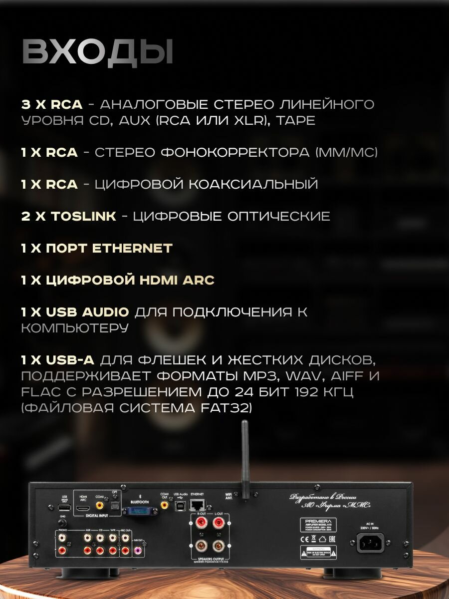 AirPlay, Bluetooth, DLNA, aptX, встроенный ЦАП, интернет-радио, с USB-накопителя
