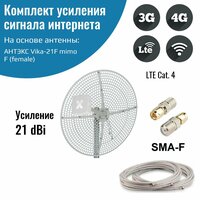 Купить Усилитель интернет сигнала 2G/3G/WiFi/4G антенна Vika-21F MIMO + кабель + переходники SMA с доставкой по всей России.