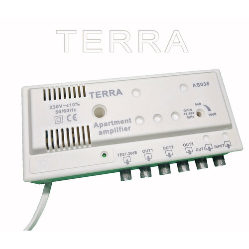 Усилители Terra AS038 (SE) квартирной разводки с 4-мя выходами и встроенными плавными регуляторами усиления.