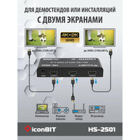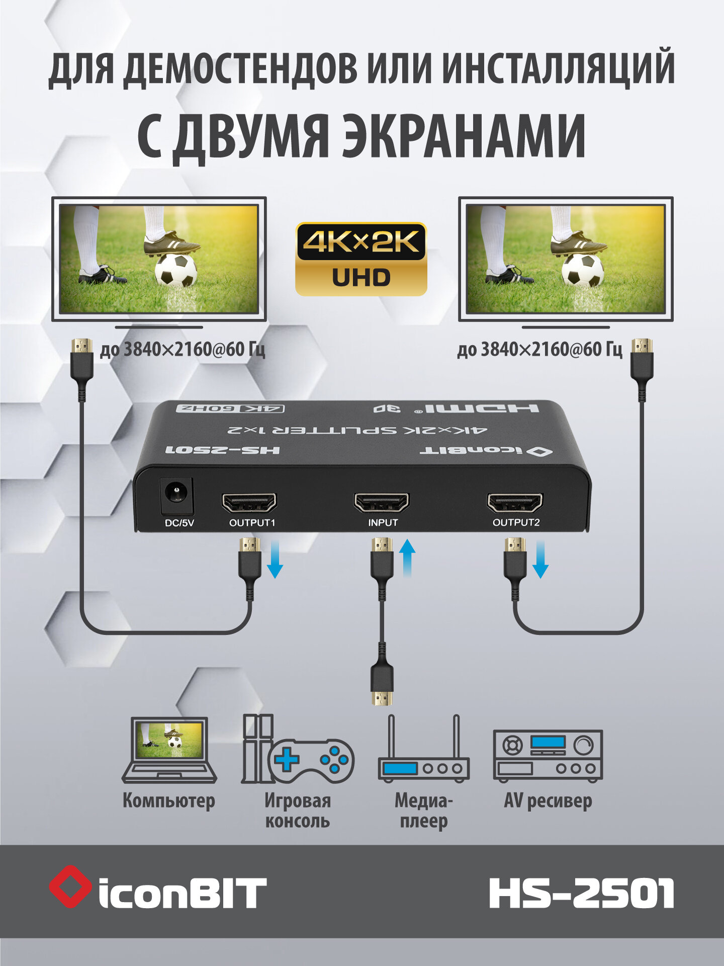 Купить Усилитель-распределитель HDMI IconBIT HS-2501, 1×2, поддержка 4К60 с доставкой по всей России. Усилитель-распределитель HDMI IconBIT HS-2501, 1×2, поддержка 4К60: сравнение цен, характеристики, фото, актуальное наличие и цены.
