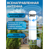 Усилитель имеет информационный дисплей, который отображает текущий уровень сигнала, а также может использоваться для настройки наилучшего усиления сигнала в зависимости от условий. Комплект включает в себя усилитель, уличную направленную антенну, кабель длиной 10 метров, комнатная антенна с кабелем 5м и адаптер питания.