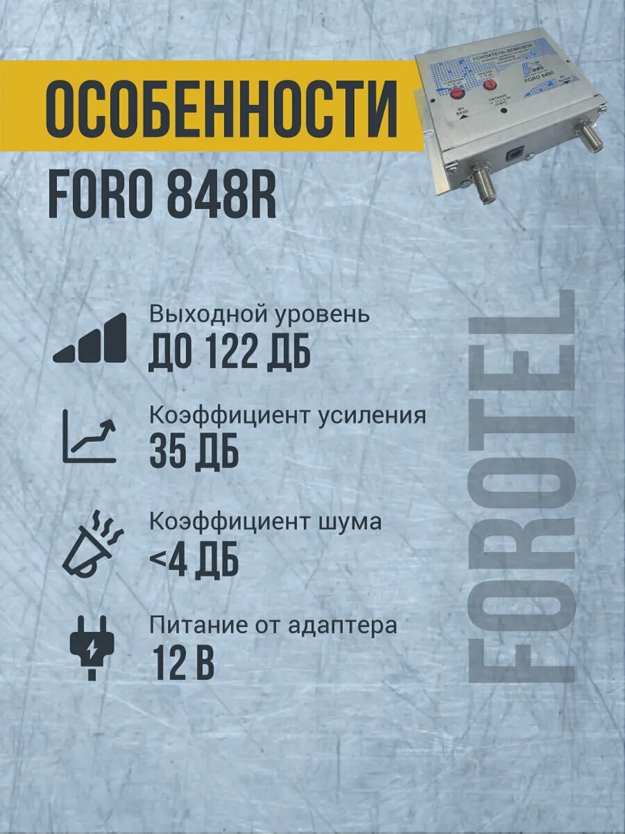 Купить Усилитель ТВ-сигнала FORO 848R с доставкой по всей России. Усилитель ТВ-сигнала FORO 848R: сравнение цен, характеристики, фото, актуальное наличие и цены.