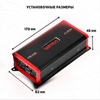Технические характеристики Класс D Количество каналов 4 Номинальная выходная мощность, 2 Ом 4х80 Диапазон частот (-3 дБ), Гц, не уже 10–40000 Входная чувствительность, В 0.2-6 Пределы регулировки ФНЧ (12 дБ/окт), Гц 50-500 Номинальная выходная мощность в мостовом включении 4 Ом 2х160 Пределы регулировки ФВЧ (12 дБ/окт), Гц 50-500 Номинальная выходная мощность, 4 Ом 4x50 Дополнительно ДхШхВ 170 х 82 х 46 Напряжение питания 9-16 В
