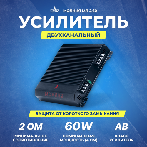 Усилитель автомобильный Ural Молния МЛ 2.60 двухканальный, мощность max 200 Вт, цвет черный. Документация.