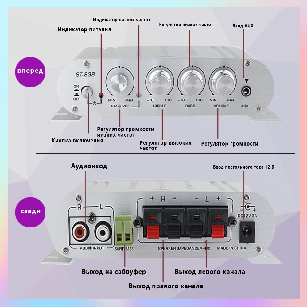 Если вы ищете домашний усилитель звука, который обеспечивает мощный и чистый звук, превосходный дизайн и простоту использования, то этот усилитель для сабвуфера - ваш лучший выбор. Улучшите качество звука вашей домашней аудиосистемы с нашим 2.1 усилителем звука для колонок и ощутите истинное наслаждение от воспроизведения любимого контента.