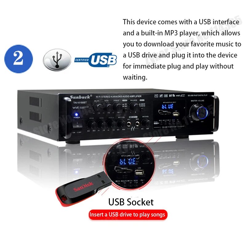 Купить Усилитель звука MAOZUA TAV-6188BT Bluetooth 12В/220В, 326BT EU Plug с доставкой по всей России. Усилитель звука MAOZUA TAV-6188BT Bluetooth 12В/220В, 326BT EU Plug: сравнение цен, характеристики, фото, актуальное наличие и цены.
