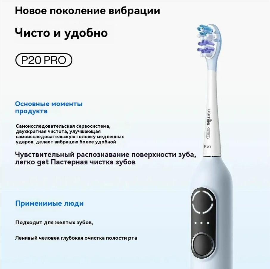 | Подробная комплектация | Ручка электрической зубной щетки*1, головка щетки * 2, кабель для зарядки type-c *1, руководство пользователя *1, держатель зубной щетки*1 |