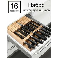 ✓ Натуральная деревянная подставка – защищает лезвия и украшает кухню